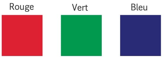 Note : en France, ces trois couleurs se nomment RVB.