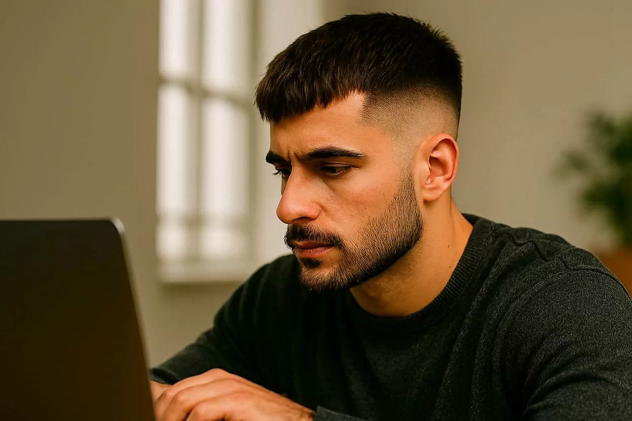 - Analyse de la chevelure : avant de commencer la coupe, évaluez la densité des cheveux et la forme du visage de votre client. Une Crew Cut est polyvalente, mais le choix du dégradé doit être adapté.